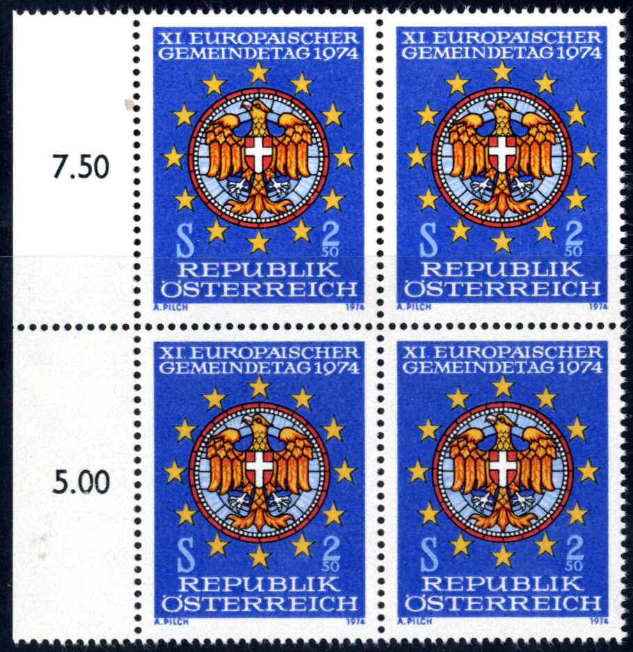 1974, Gemeindetag nicht verausgabt, postfrischer Randviererblock, ANK (15) / 3.200,-